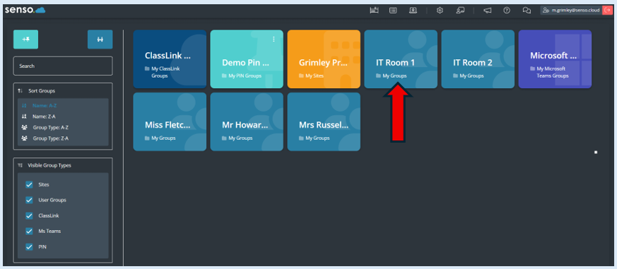 Once logged in to your console you will need to select the group that you will be working with. The group that is being selected for this example is ‘IT Room 1’.