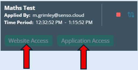 The scene that we have selected was set up as a ‘Automatic’ scene which means that the ‘Website Access’ and ‘Application Access’ buttons will start to run straight the way and this is indicated by the buttons being green.